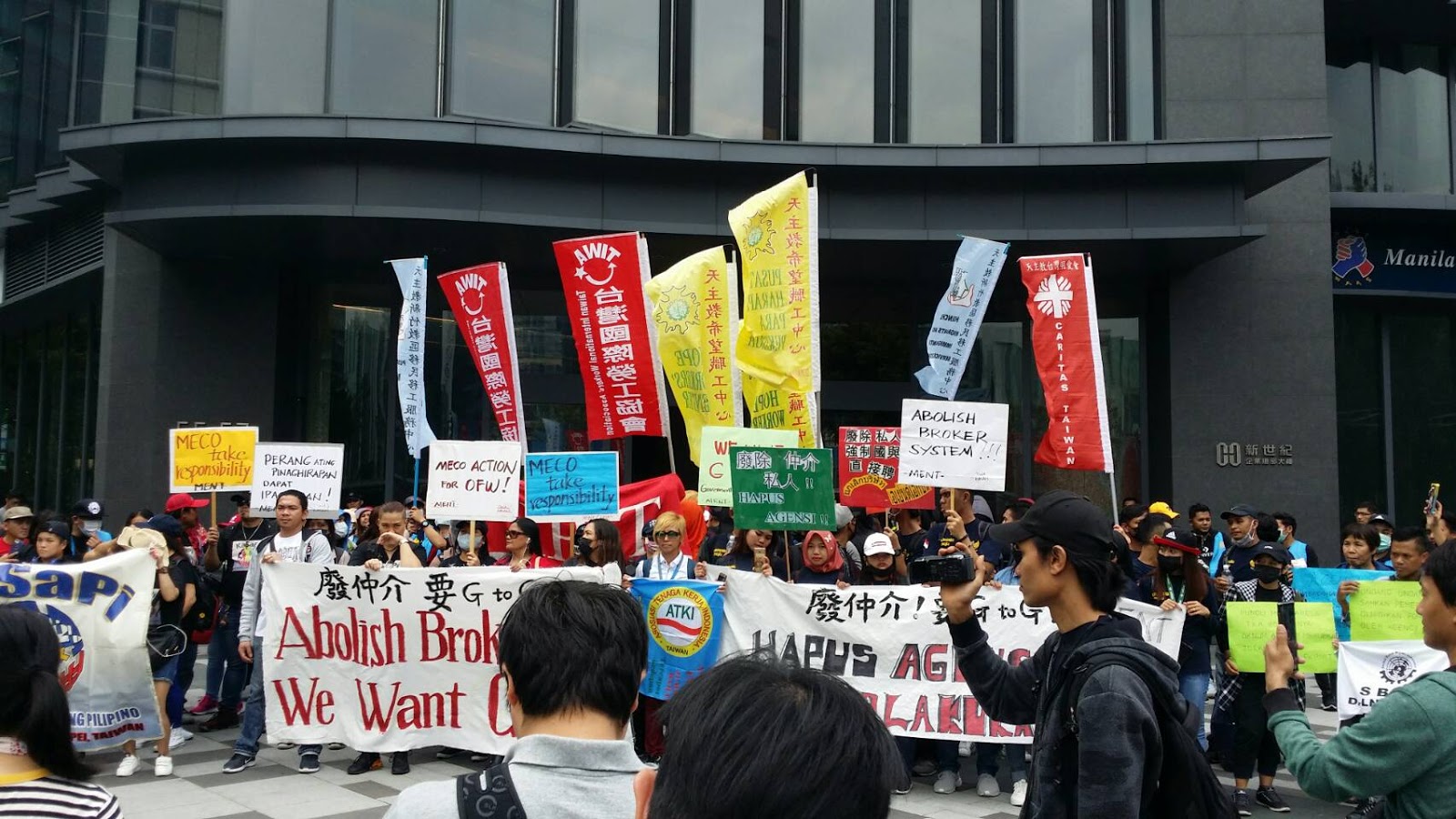 11月3日,各國移工在印尼、菲律賓、越南三個辦事處召開記者會,抗議母國政府長期放任「私人仲介」剝取移工的血汗,並要求廢除私人仲介制度,強制政府對政府直接聘僱!